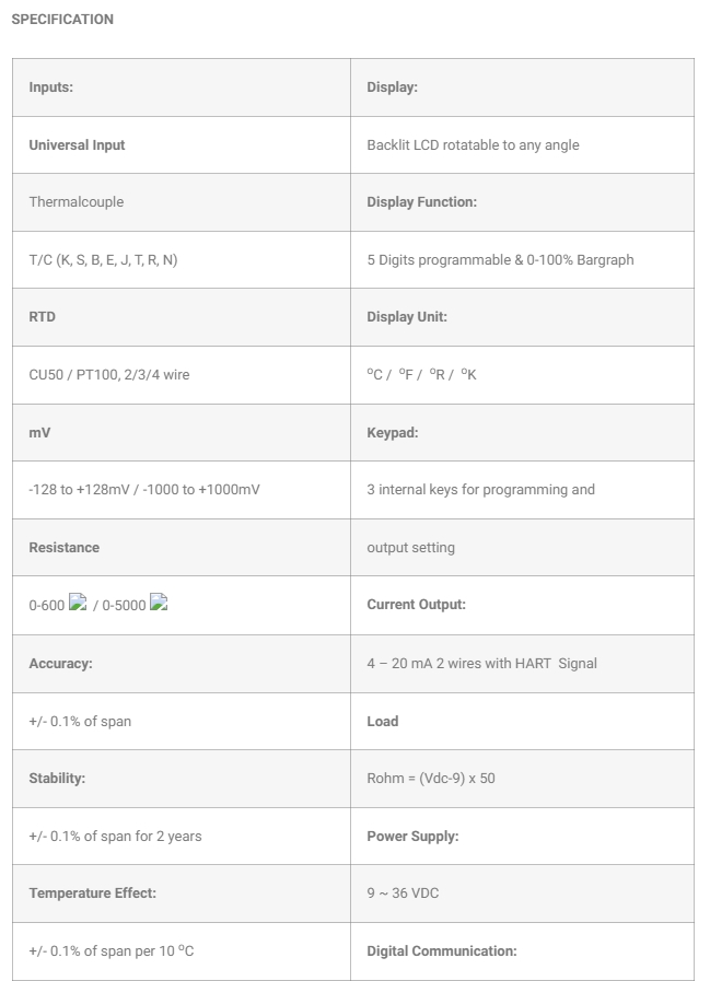 ATT1000 two-wire input temperature transmitter is a high performance device that receives Thermocouple/RTD/ohm/
