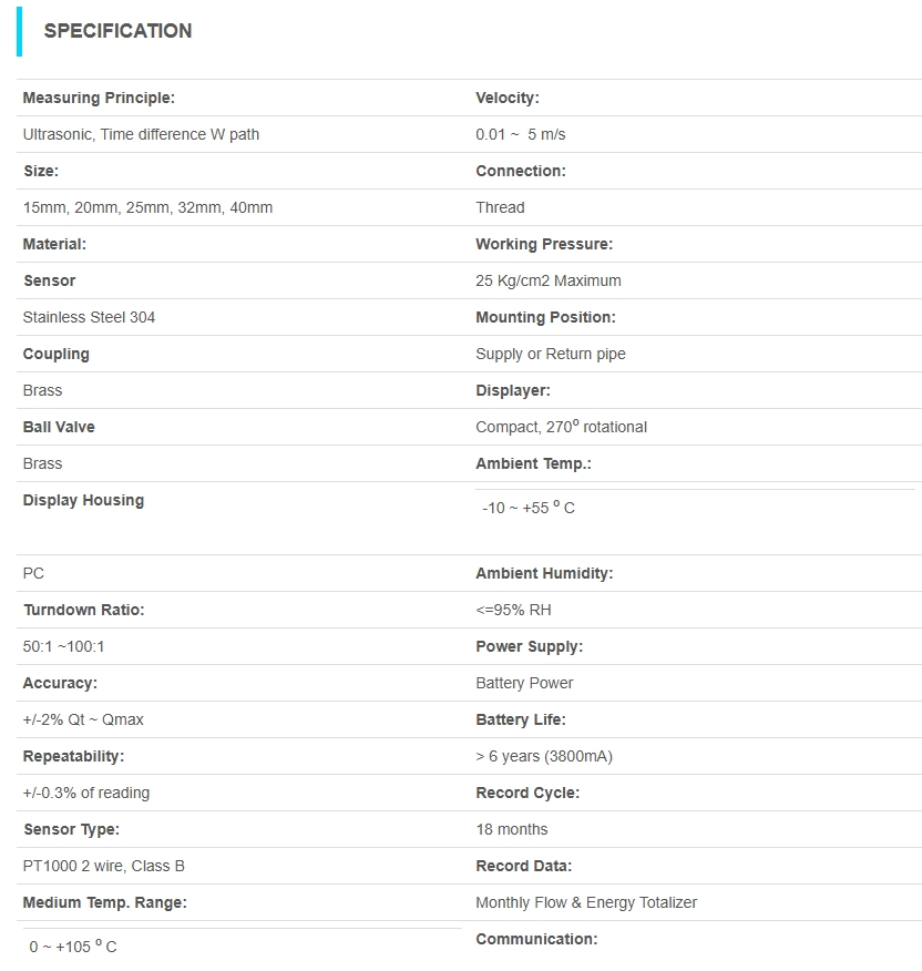 AUF200 Series measure flow or energy of water running in heating/cooling pipe by temperature sensor based on ultrasonic flowmeter. It’s simple, easy to install and battery powered, no need of external power. It can display flow rate, total flow, total heat, total cool, heat power and supply/return temperature etc..