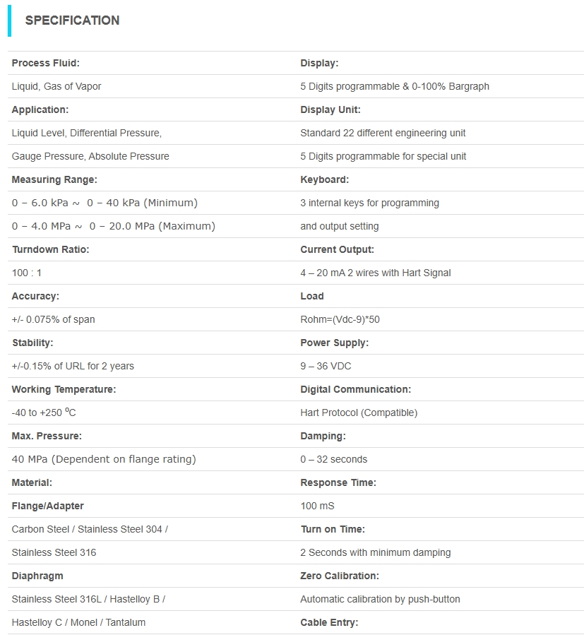 ADP9000L SeriesADP9000L series is a digital differential pressure transmitter designed for industrial level measurement applications. The ADP9000L can be configured to provide intergrated solutions for a broad range of pressure and flow measurement applications.