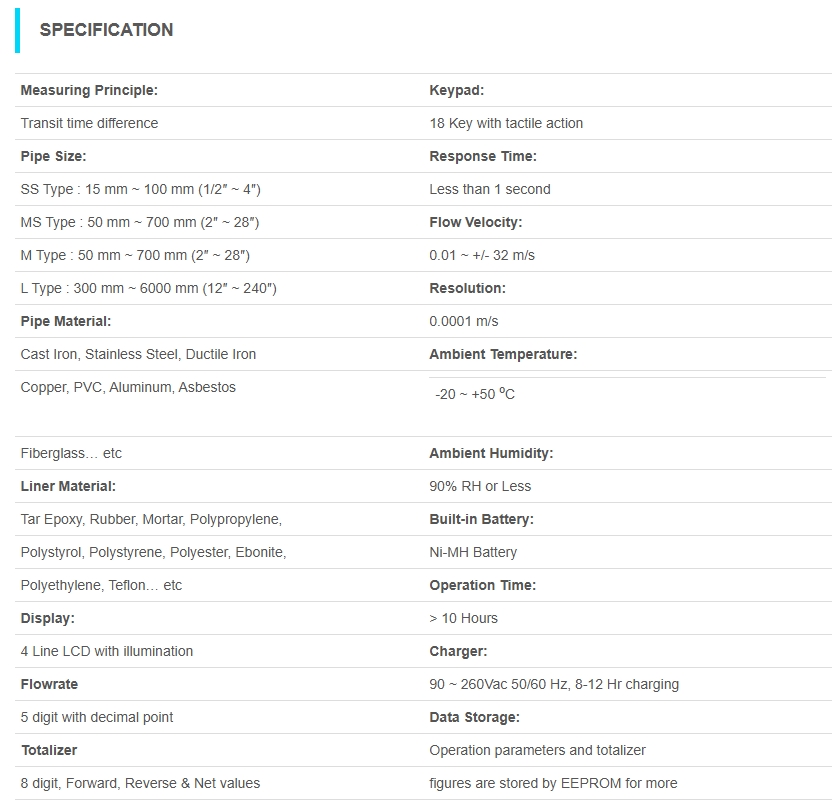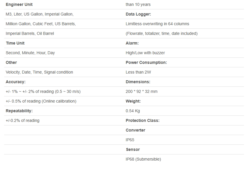 - Wide range, Velocities( 0.01 ~ +/- 32 m/s)